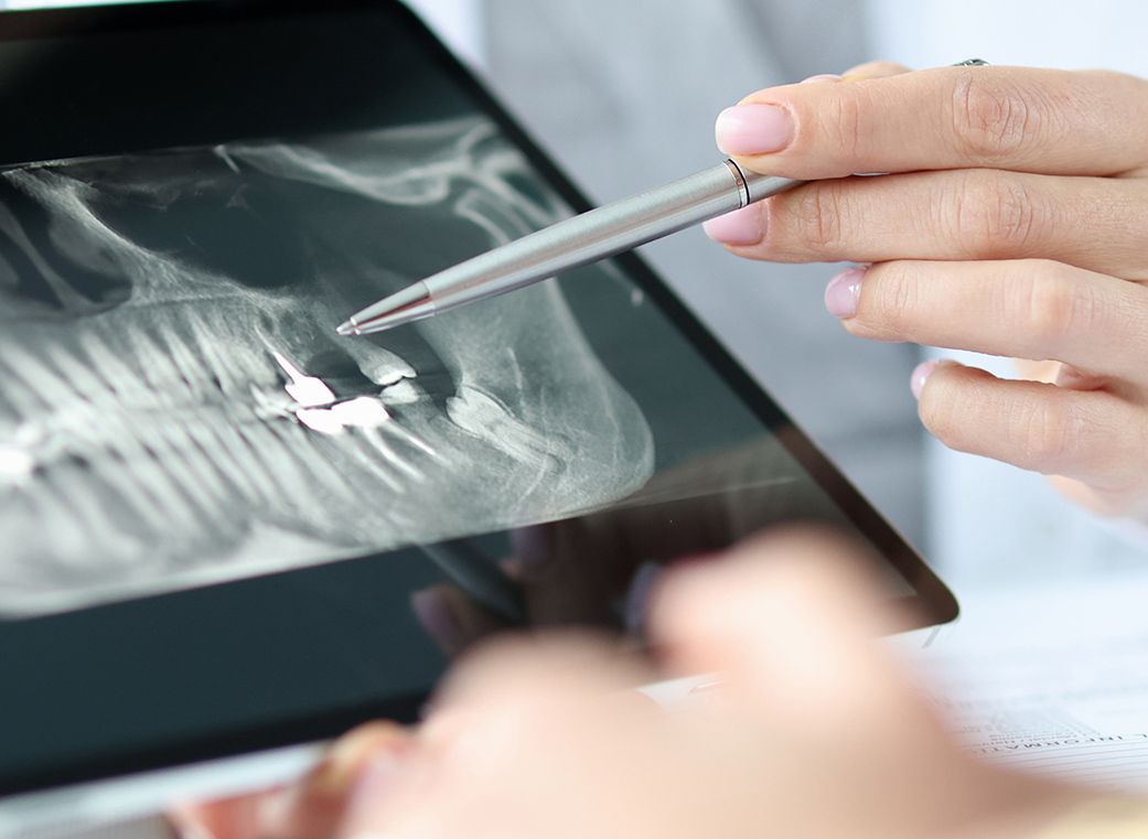 インプラントでは、麻酔を用いた外科手術を行うため、精密検査と問診を行います。また、お口の型取りやデジタルレントゲン・歯科用CTの撮影により、インプラントを行うのに十分な顎の骨があるかを調べます。