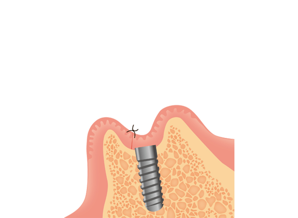 「インプラント体」と呼ばれる人工の歯根を埋め込みます。手術後の腫れは、個人差がありますが2日程度がピークで、4日後を目安に少しずつ引いていきます。