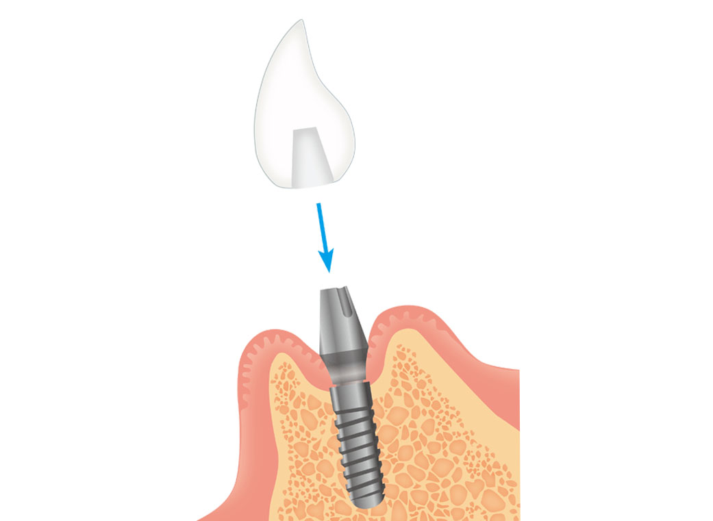仮歯に基づいて、人工の歯を製作します。切開した歯ぐきが完治したら、アバットメントの上に人工の歯を取り付けて治療完了です。
